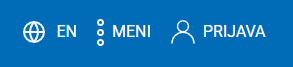 Na desni strani pasice se v zgornjem desnem kotu nahajajo trije gumbi; "EN", "MENI" in "PRIJAVA".